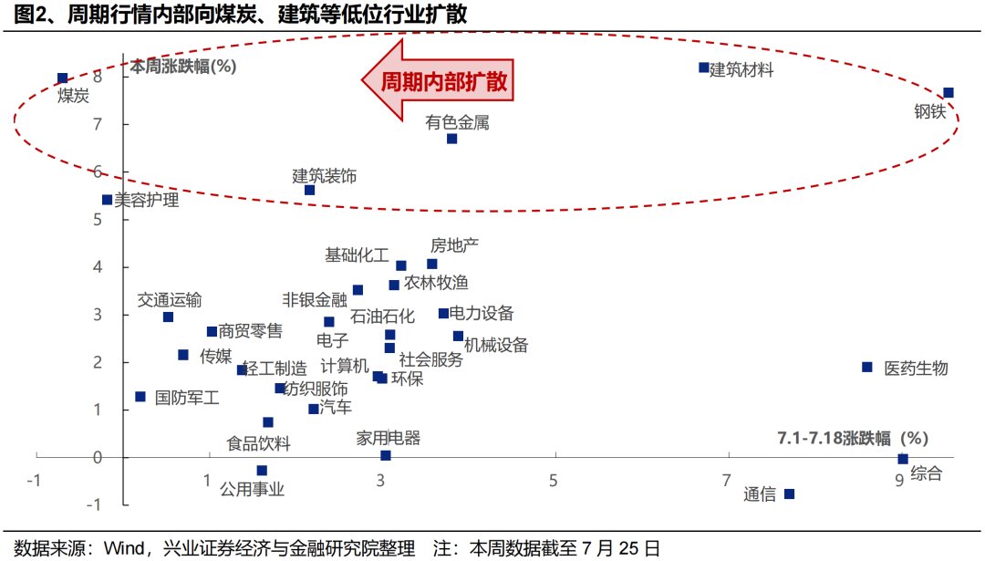 我们最早在6月29日的报告《新高之后,7月重点关注哪些方向?》中基于“旺季+涨价”的逻辑首推资源品,并在7月“反内卷”以来反复强调资源品的投资机会,至今已演绎成一轮轰轰烈烈的投资主线。