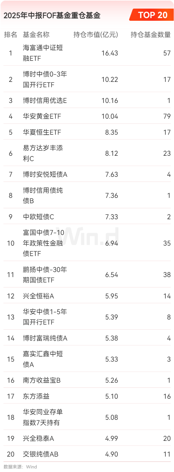 2025年中报,FOF重仓的基金普遍以工具化定位为主。